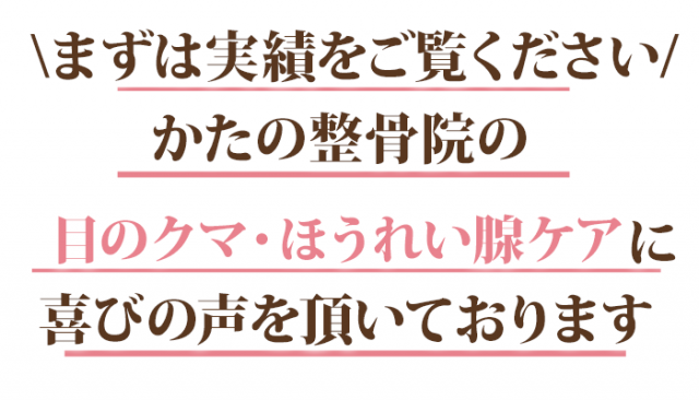 元々、整体でかたの整骨院に通院していましたが、院内に「目の下のクマ・ほうれい腺ケア」とのPOPを見て興味が出て、初回体験コースは無料だったので先生にお願いしました。